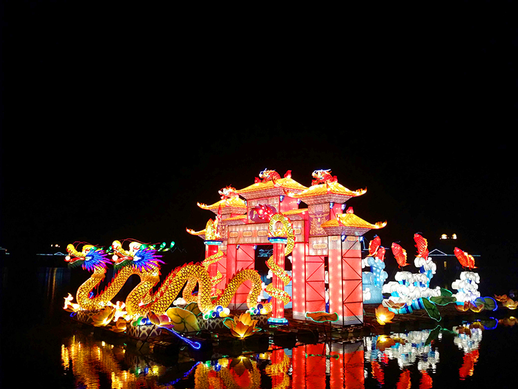 雖說(shuō)水面燈組距離游客觀賞比較遠(yuǎn),但是燈組制作的細(xì)節(jié)地方一點(diǎn)都不能馬虎,該平面的地方就要平面制作,該立體的地方就要做出立體效果,這里順便多兩句嘴,有些花燈廠家偷工減料抱著僥幸心理覺(jué)得反正水面燈組距離游客遠(yuǎn),游客也看不清楚就馬虎的做,做燈會(huì)活動(dòng)的朋友們一定要注意這種花燈工廠。
