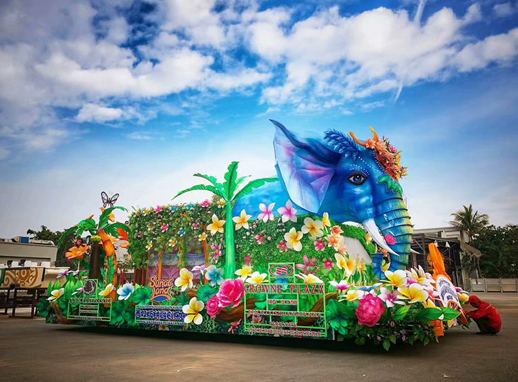 彩車的制作難度相比起傳統(tǒng)花燈要難一些,畢竟是要固定在貨車上而且要站人上去還要上街游行,所以考驗(yàn)燈組穩(wěn)定性難題一點(diǎn)不比水面燈組少。