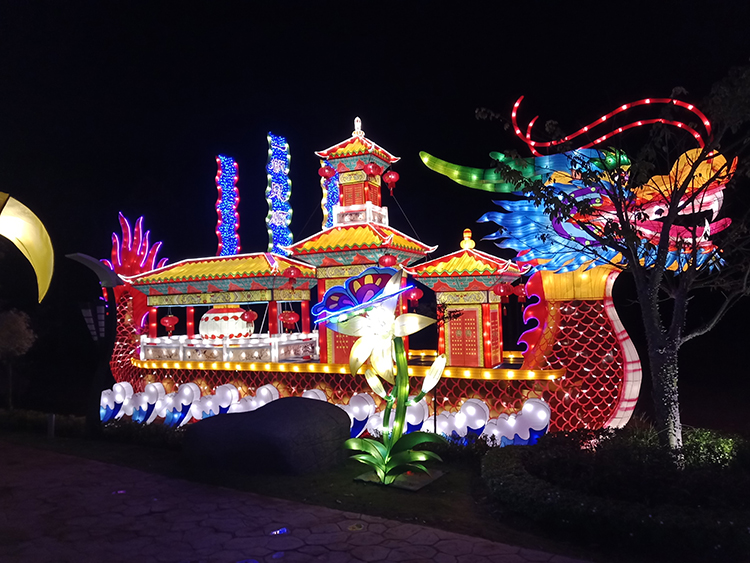 彩船龍舟這種主題的彩燈燈組一直以來(lái)也是自貢燈會(huì)活動(dòng)中的重點(diǎn)花燈燈組,很多景區(qū)公園的湖面不知道做什么主題燈組的時(shí)候都會(huì)選擇彩船龍舟或者是年年有余這樣的花燈燈組來(lái)裝飾。